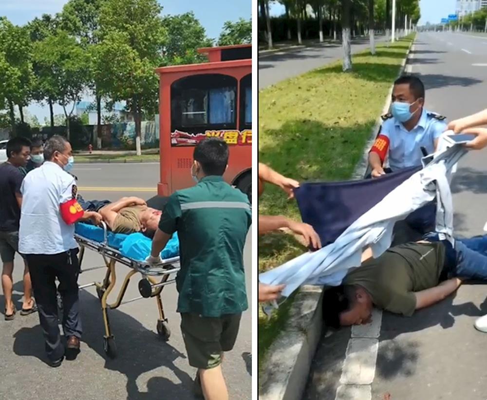 8月1日下午13時(shí)30分左右,此時(shí)正值烈日當(dāng)頭,酷暑難耐,常德公交公司30路線駕駛員張官清和疫情防控督導(dǎo)員袁秀輝,駕駛湘JY1723號(hào)車輛行駛在朗州北路市民之家路段時(shí),發(fā)現(xiàn)一位中年男子臉朝下暈倒在路邊,駕駛員張官清立即將車靠邊停好,疫情防控督導(dǎo)員袁秀輝和一位熱心乘客跑下車來緊急救援。張師傅見狀撥打120急救電話,袁師傅擔(dān)心路人身體虛弱不能承受烈日暴曬,脫下上衣和一位熱心乘客為其遮擋住灼熱的太陽,他們蹲在烈日下守護(hù)著暈倒的路人直至救護(hù)車到來,幫著醫(yī)務(wù)人員一同把路人送上救護(hù)車后才繼續(xù)營(yíng)運(yùn)。